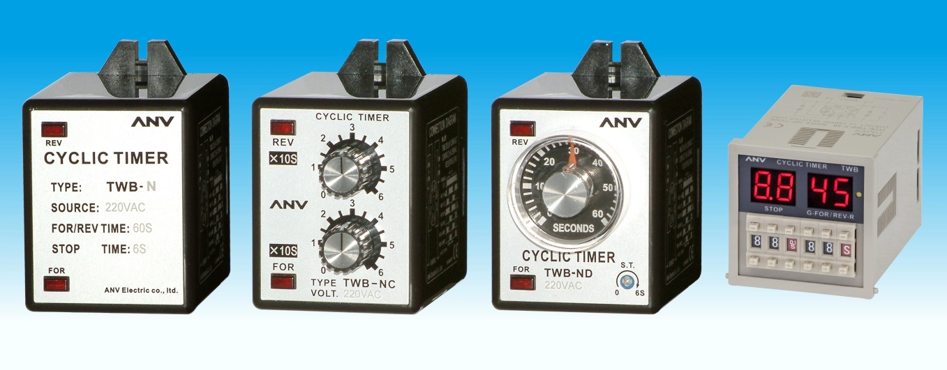 特性具有對稱之往復動作獨立接點,可控制正轉或逆轉中間停頓時間可調(TWB-NC, TWB-ND, TWB-B-48)運轉時間可調(TWB-NC, TWB-ND, TWB-B-48)可依使用者需求訂製中間停頓時間及運轉時間具有2位Display數位顯示(TWB-B-48)兩只指示燈,動作情況一目了然,易於監視(TWB-N, TWB-NC, TWB-ND)具有CE認證